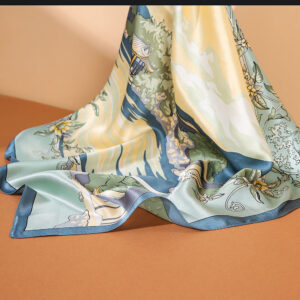 产品名称:100%真丝数码印花方巾女士服装