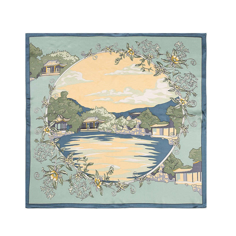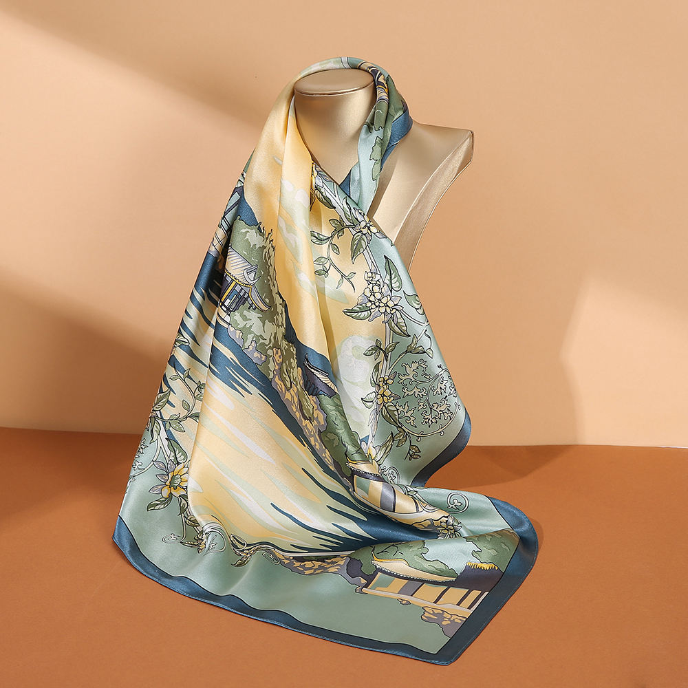 产品名称:100%真丝数码印花方巾女士服装