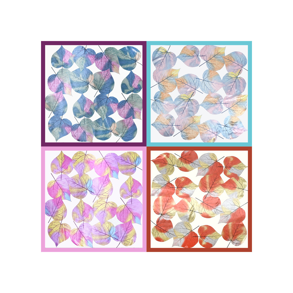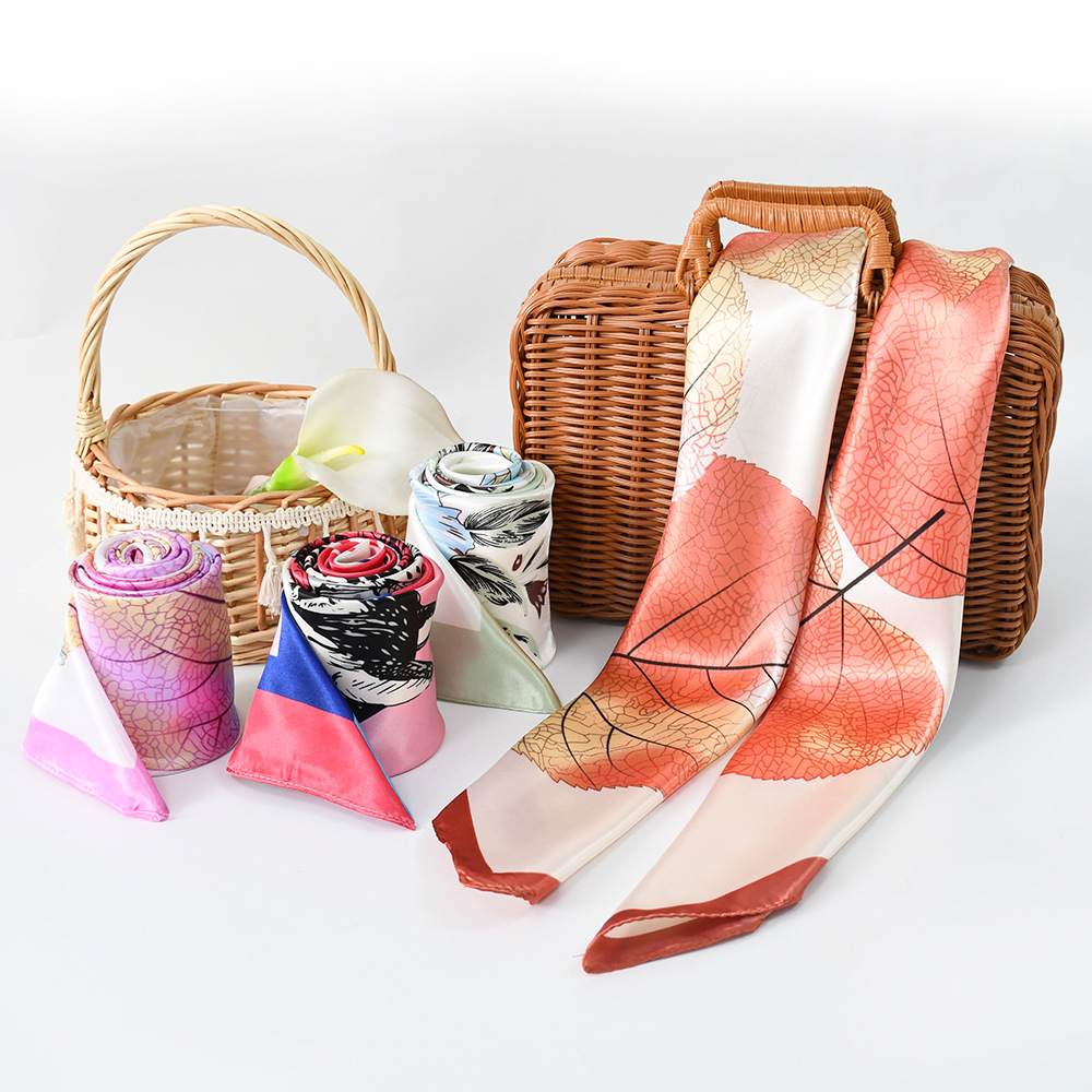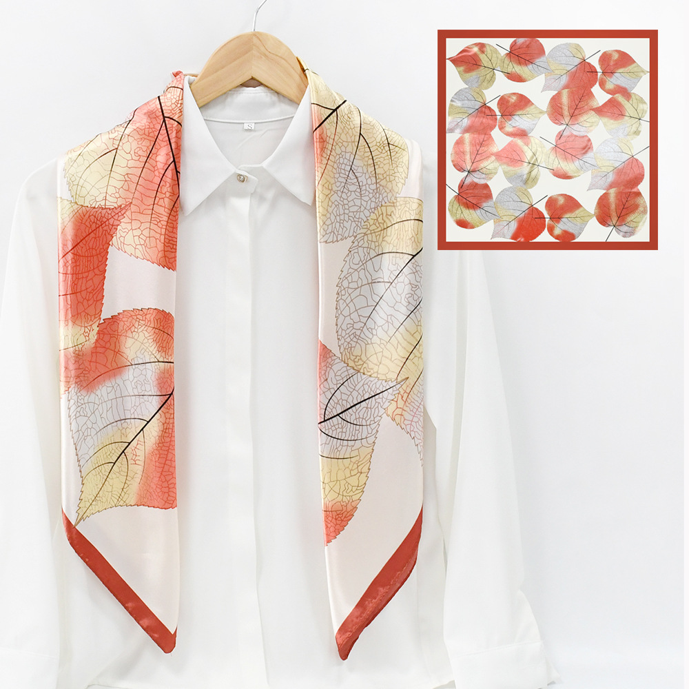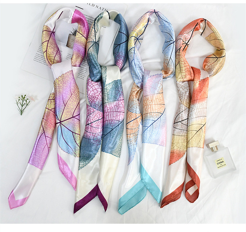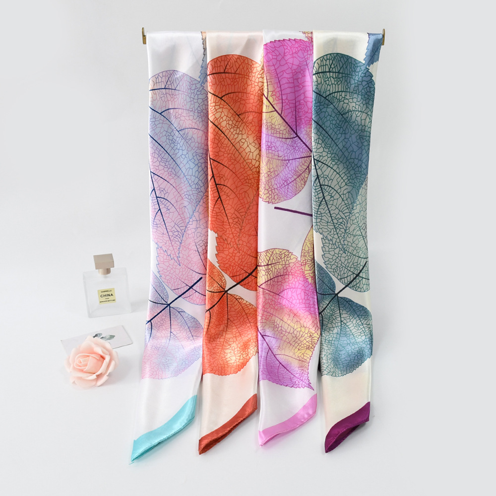 Spring Women's Versatile 90cm Silk Feeling Scarf Fashion Elegant Leaf Flower Multi Color Shawl Beach Scarf